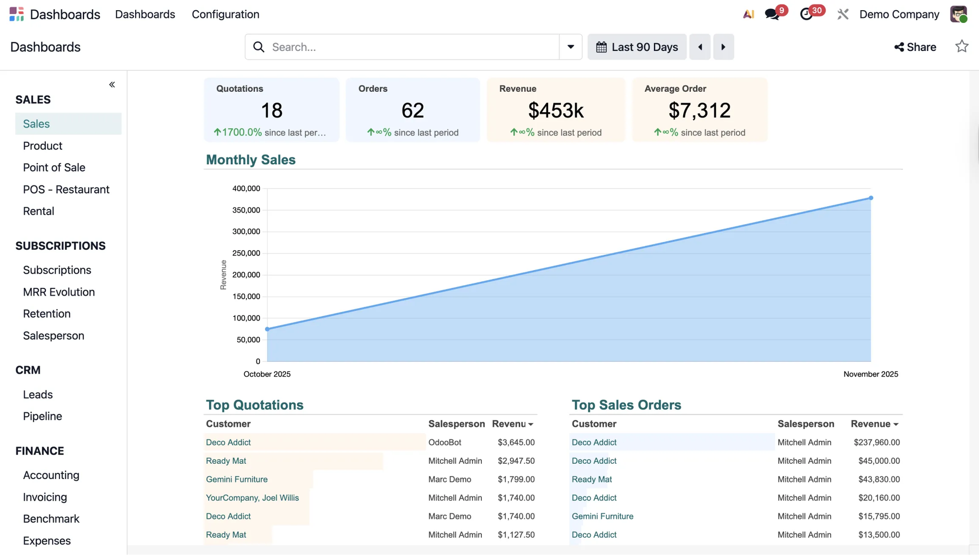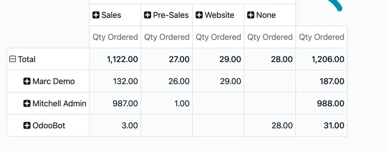 Odoo also makes it easy to track the performance of individual salespeople.