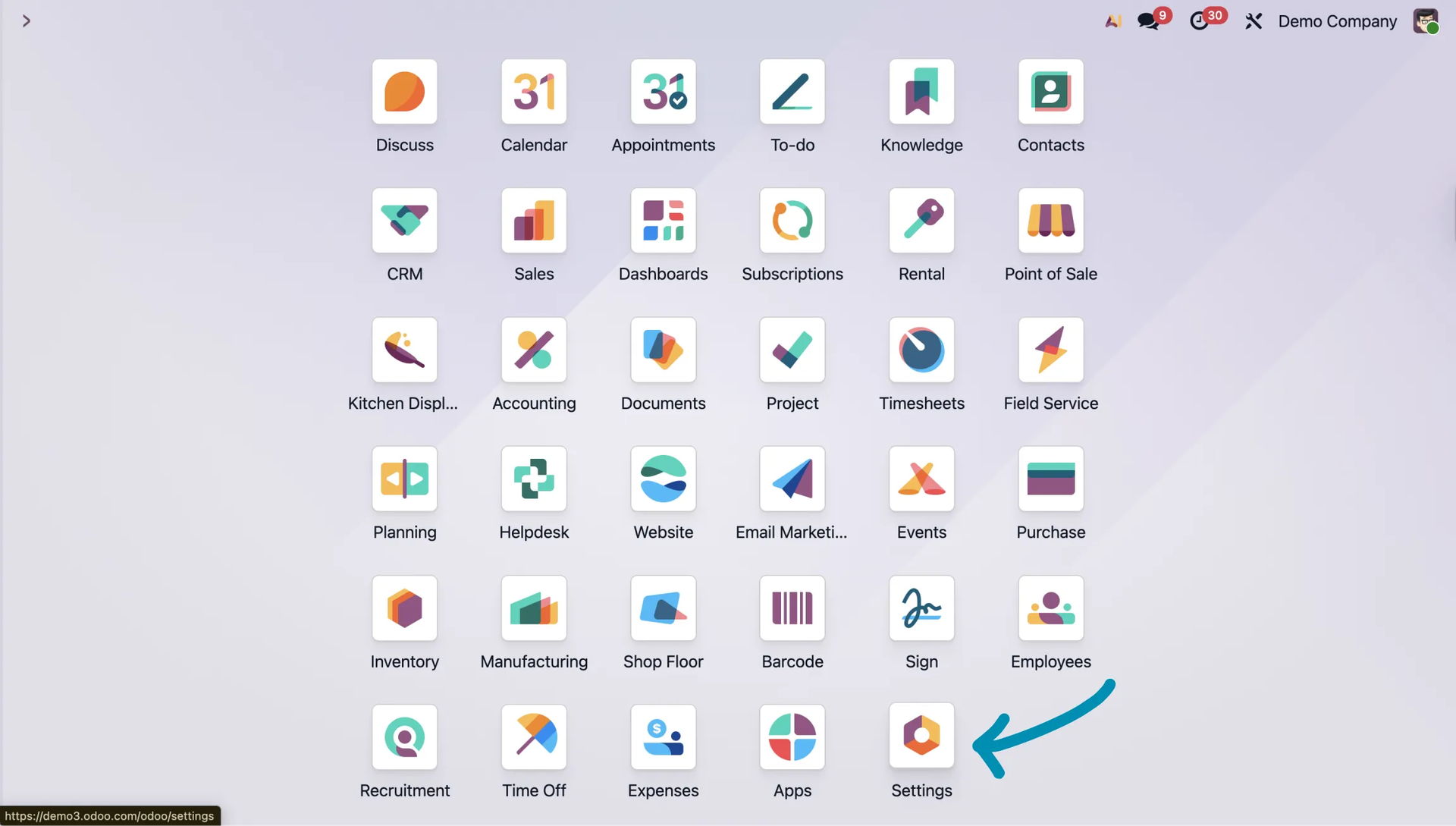 To do this, go to the Settings module.