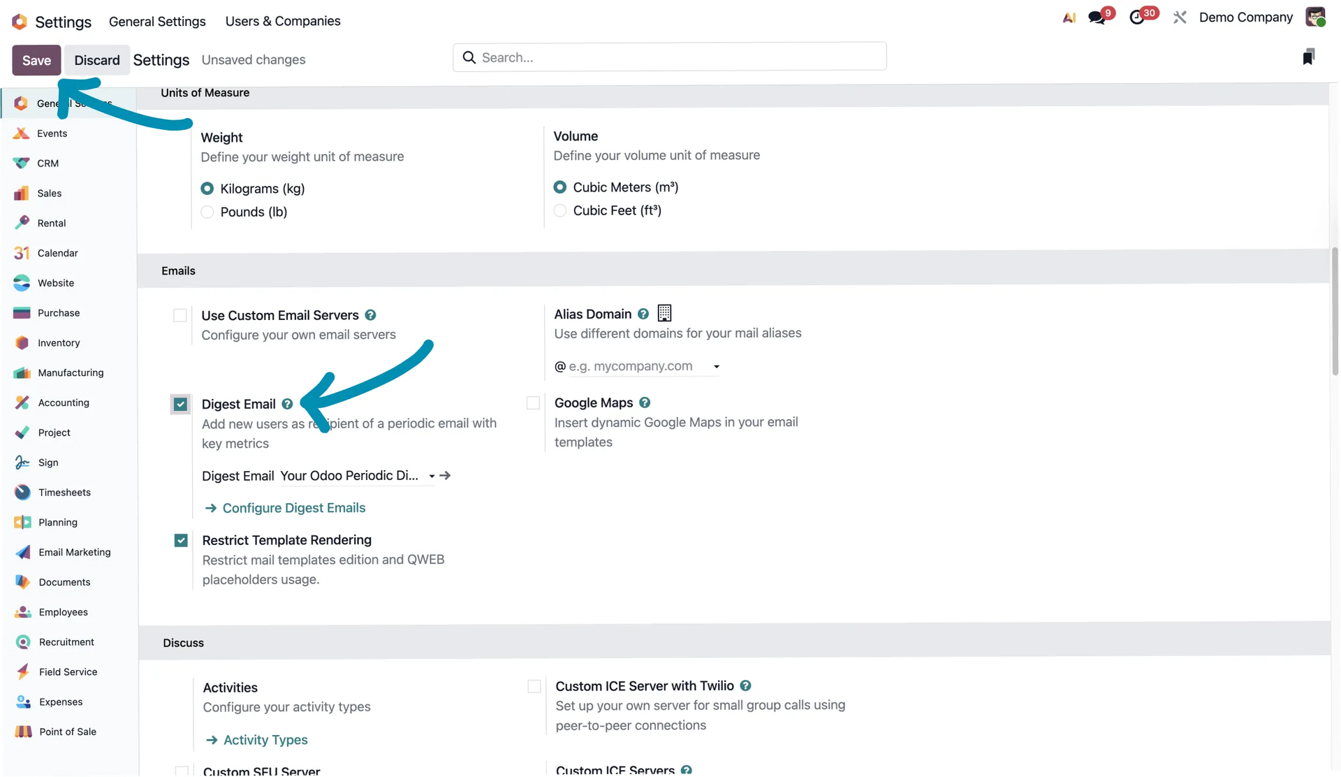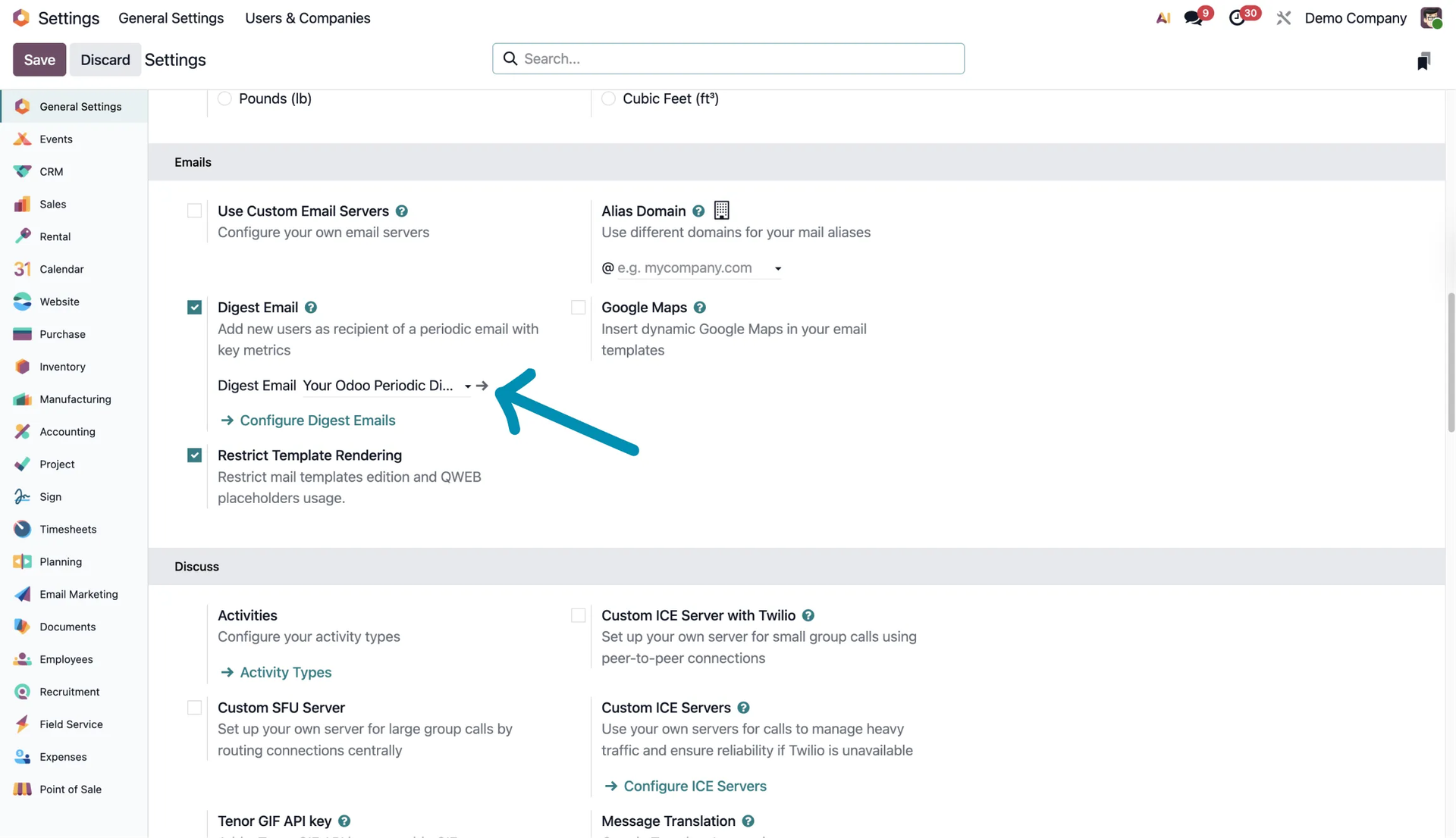 Scroll down, enable Digest Email, and save the changes.