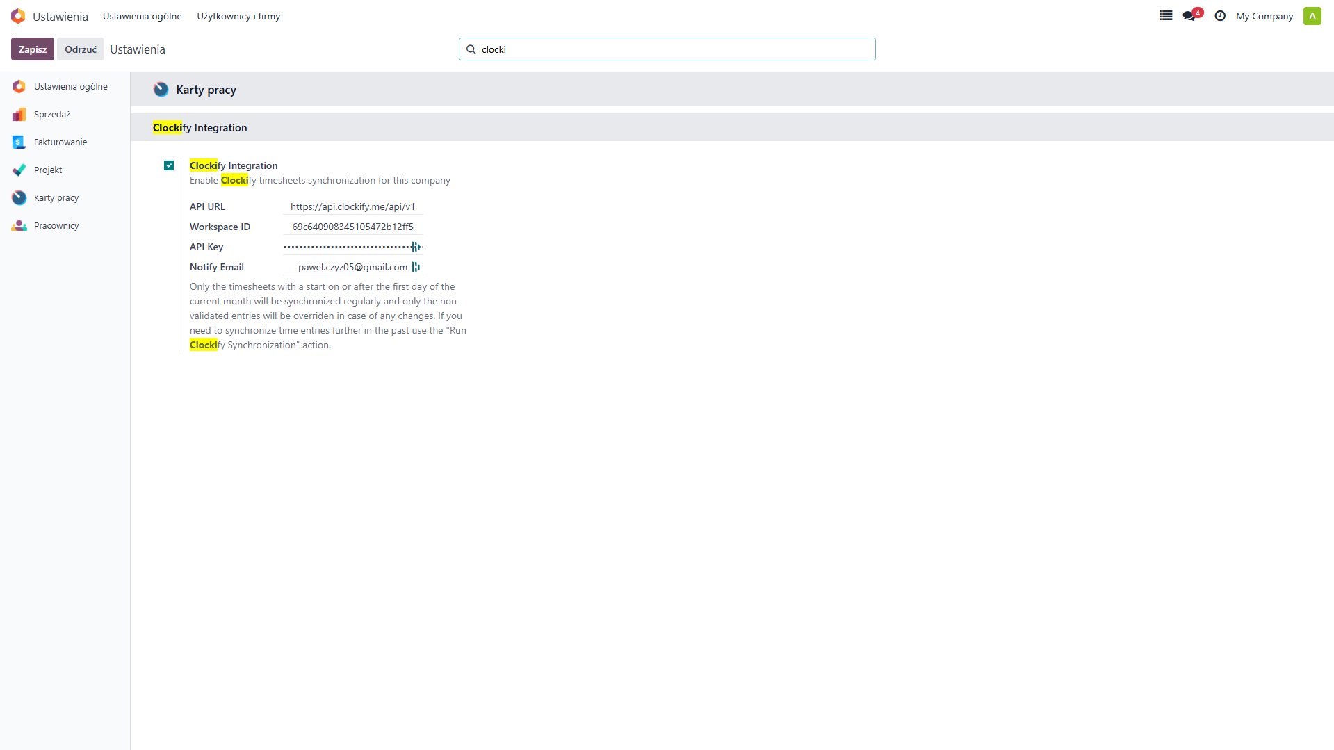 Step 7: Add the corresponding Clockify ID to each user in the Odoo user settings.