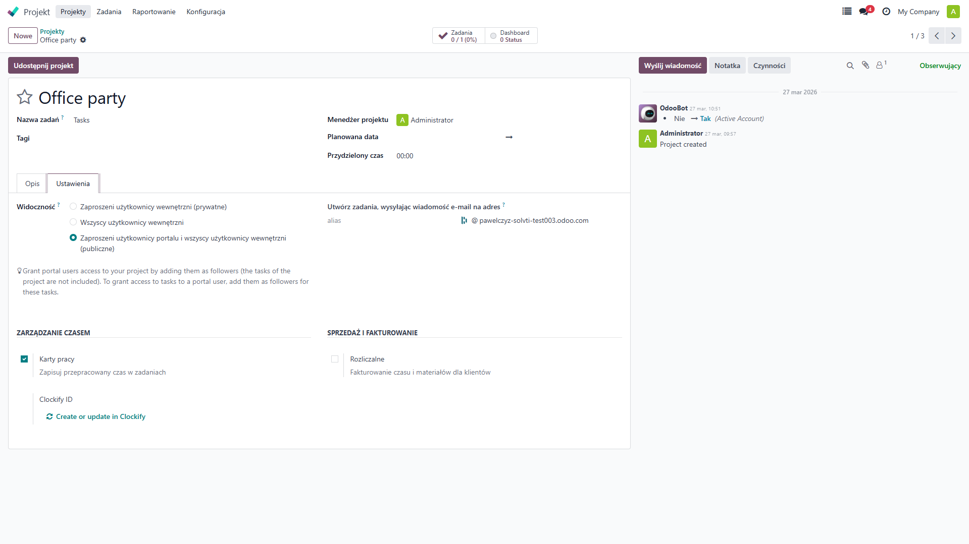 If you change a task status in Odoo to Done and click Create or Update, the task status in Clockify will also change to Inactive. As a result, it will no longer be possible to track time for that task.