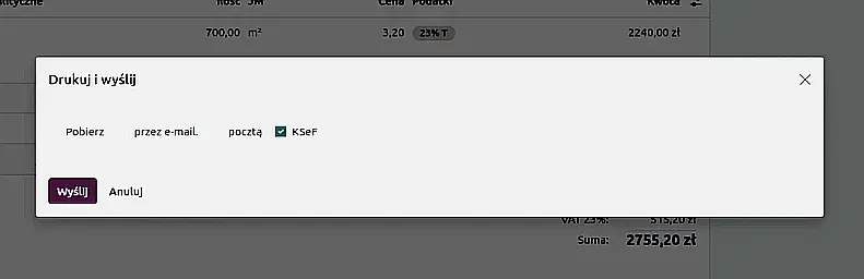No additional tools or integrations required. Simply select the KSeF option when sending an invoice and Odoo will automatically transmit it to the National e-Invoicing System.